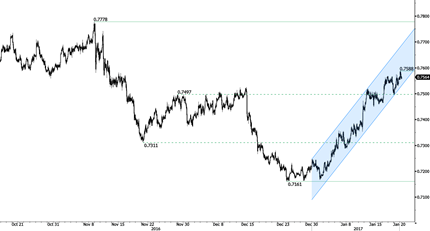L'optimisme post-Brexit a été refroidi ce jour par la contraction inattendue de -2.0% des ventes de détail britanniques, contre 0.2% précédemment (après révision). Ce recul sera sans nul doute exploité par les partisans de l'UE et du marché unique comme un signe clair du coût élevé d'un "Brexit dur", une théorie qui n'est cependant pas étayée par les données économiques globales. En exposant sa stratégie de sortie de l'UE, la Première ministre Theresa May a envoyé en message de confiance qui a provoqué un mouvement haussier sur le GBP. La forte chute de la livre ce jour devrait être temporaire et nous la voyons comme une opportunité de reprendre des longs GBP/USD. Surveillez un rebond temporaire des places boursières allemandes, car l'affaiblissement des indicateurs économiques devrait ramener le Royaume-Uni à la table des négociations. Comme nous l'avons suggéré par le passé, nous anticipons un Brexit plus "soft" que "hard". Tandis que le débat se poursuit sur fond de données ou de commentaires surmédiatisés, il y aura des occasions à bon compte sur la sterling.